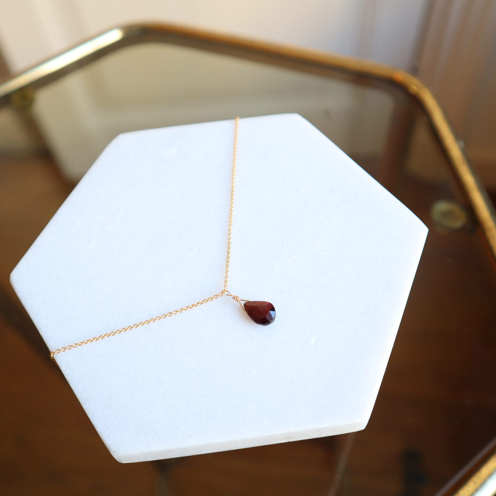 Deze ketting met granaat heeft een hele mooie donkerrode kleur. Granaat is een hele harde steen en kan daarom mooi geslepen worden om goed te glitteren. Dat zie je ook bij deze ketting!